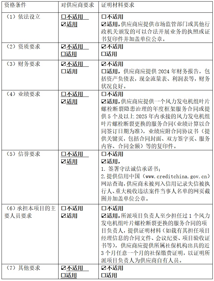 天塘山風(fēng)電場2026年度風(fēng)機(jī)葉片螺栓斷裂隱患治理采購項(xiàng)目已具備采購條件,現(xiàn)公開邀請供應(yīng)商參加采購活動。