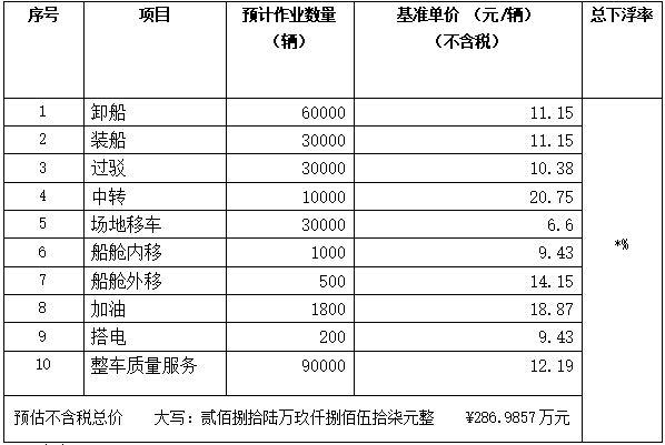 (二)表中的作業(yè)量均為預(yù)估值,僅供供應(yīng)商參考,不作為結(jié)算依據(jù),最終結(jié)算以實際作業(yè)量為準(zhǔn)。供應(yīng)商應(yīng)對市場進行考察預(yù)判,自行承擔(dān)風(fēng)險與收益。