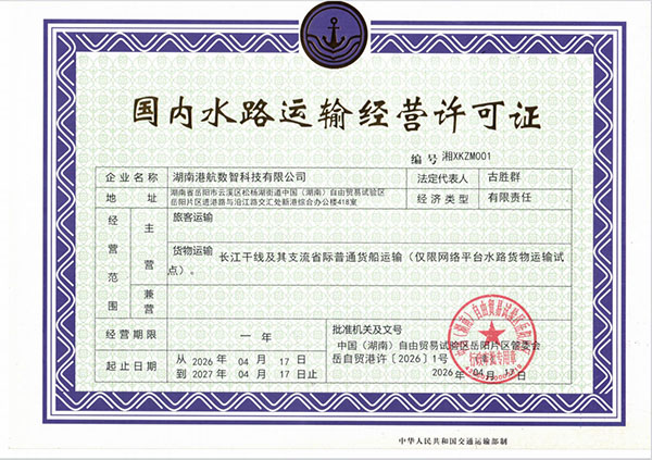 • 全省首張水路網(wǎng)絡(luò)貨運(yùn)牌照落戶城陵磯港口集團(tuán)
