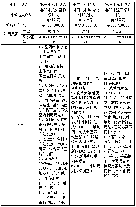 第一中標(biāo)候選人:岳陽市規(guī)劃勘測設(shè)計(jì)院有限公司