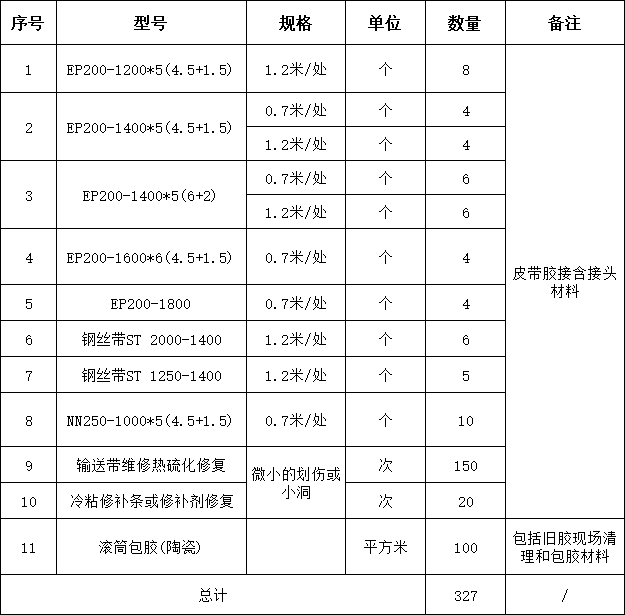 本項(xiàng)目主要分為兩項(xiàng)業(yè)務(wù):一、滾筒陶瓷包膠業(yè)務(wù)。每條皮帶線有數(shù)個(gè)驅(qū)動、改向滾筒,其外表面均覆蓋一層陶瓷橡膠層,用于消除運(yùn)行噪音。該層材料為磨損件,會造成摩擦異響,是公司生產(chǎn)線重點(diǎn)控制的環(huán)保因素。為保證生產(chǎn)運(yùn)輸?shù)捻樌M(jìn)行,發(fā)生損壞時(shí)需要利用維修間隙就地更換滾筒陶瓷包膠層。二、皮帶膠接業(yè)務(wù)。皮帶運(yùn)行中發(fā)生磨損、斷裂時(shí),對皮帶及時(shí)進(jìn)行硫化膠接維修、應(yīng)急修補(bǔ)作業(yè)。